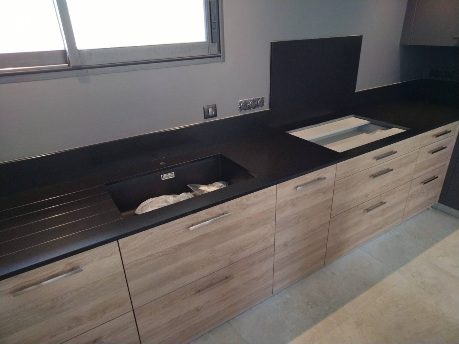 Dessus de cuisine avec le célèbre granit noir du Zimbabwe à Lyon (69) dans la Région Rhône-Alpes.