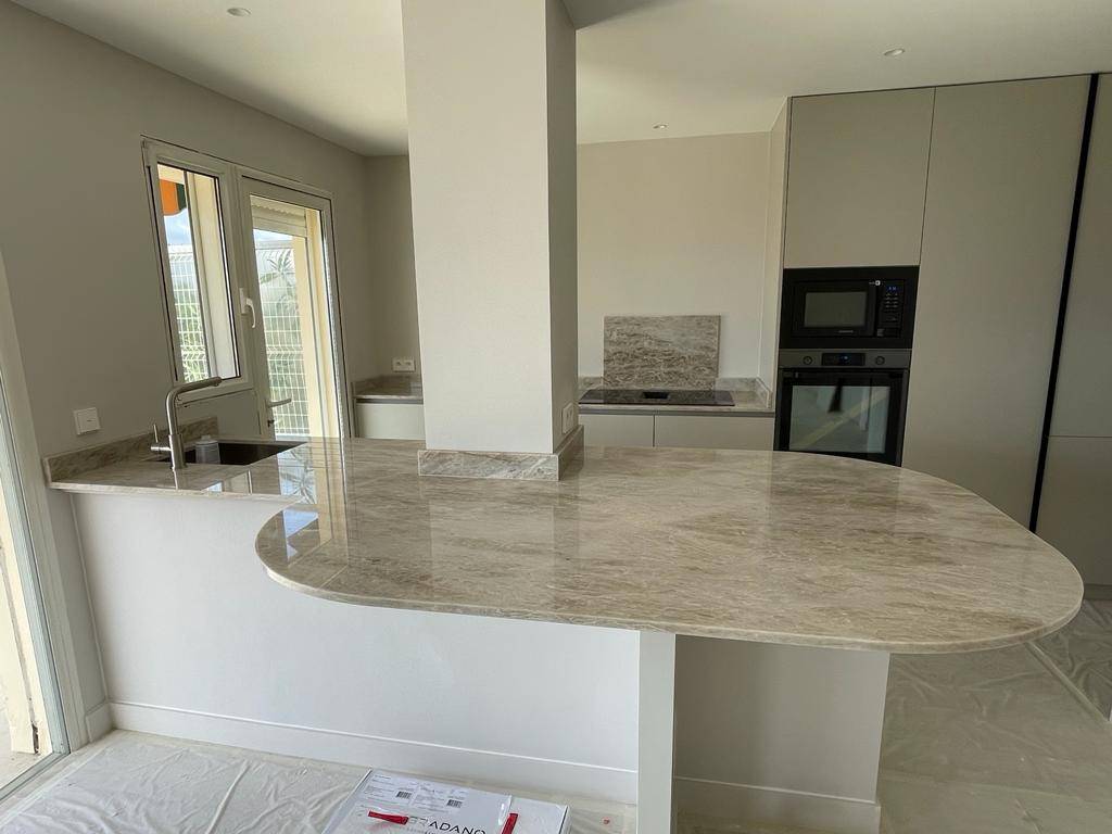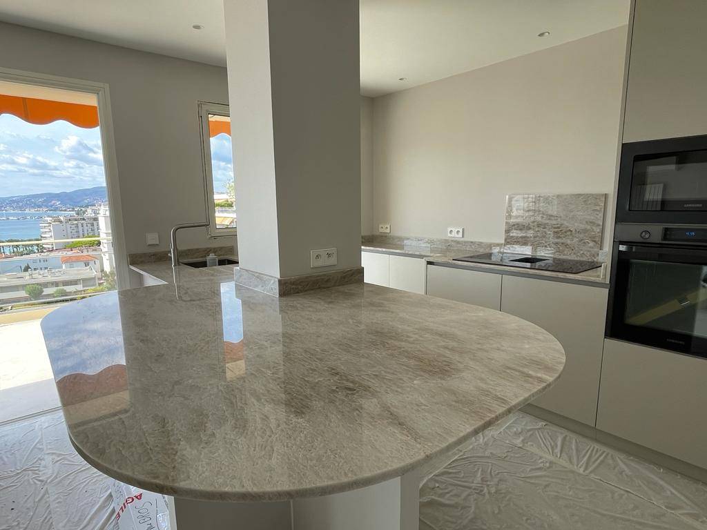 Encore une superbe réalisation par nos équipes avec la pose de plan de travail dans les Alpes-Maritimes et lus précisément à Cannes. Vous pouvez d'ailleurs apercevoir sur une photo la splendide vue mer.