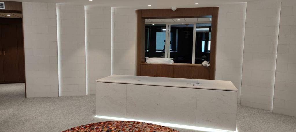 Nous avons également réalisé un habillage du bureau avec coupe d'onglet et feuillure pour incrustation d'une led.