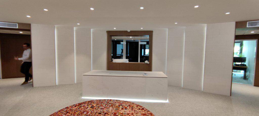 Nul doute que ce bureau fera sensation à l'entrée du bâtiment grâce aux panneaux verticaux.