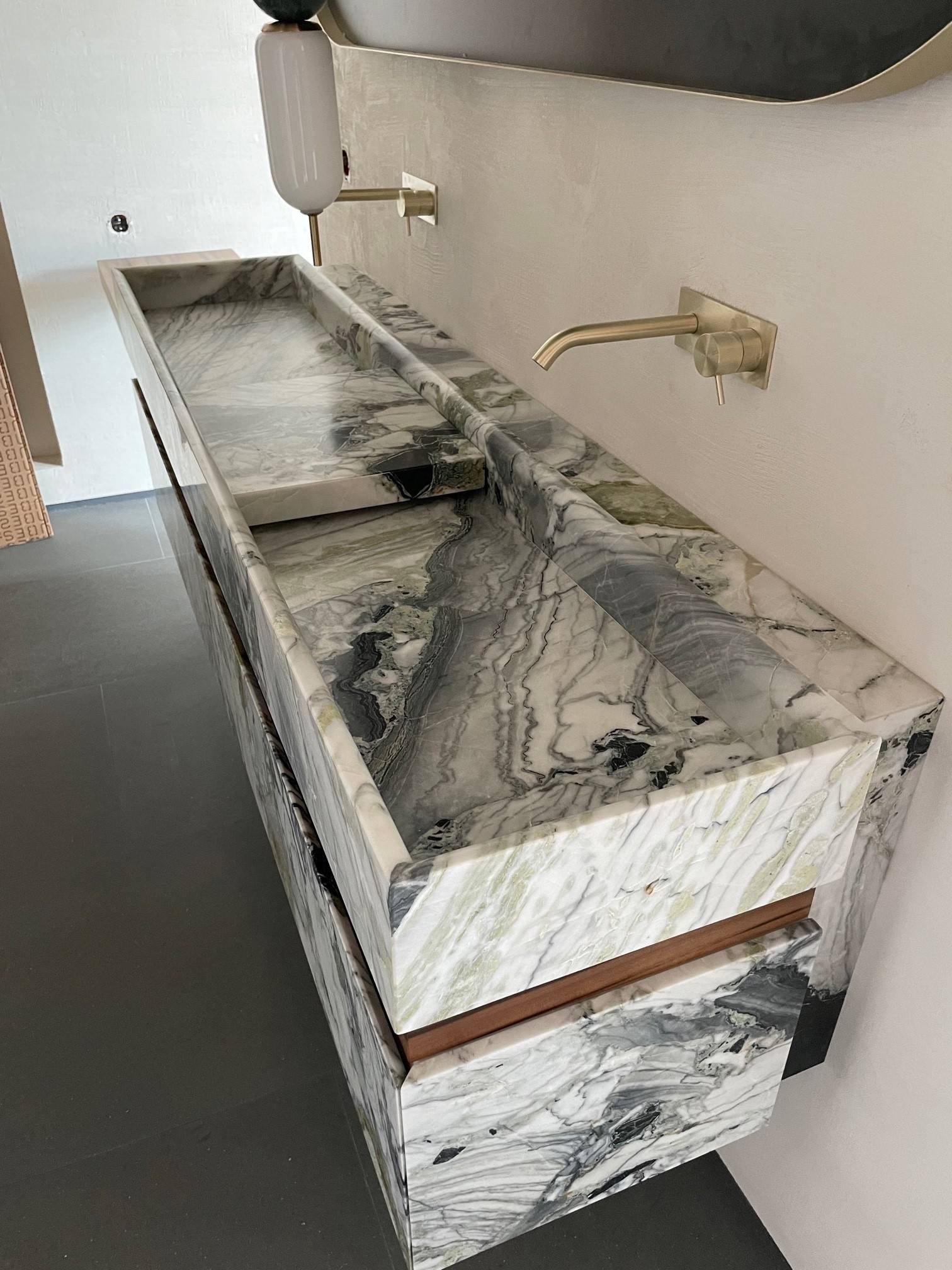 Pour une salle de bain élégante à Saint-Étienne, le choix de la pierre naturelle est essentiel. Le marbre, avec son aspect luxueux et ses veines uniques, apporte une touche raffinée à votre espace. Il est idéal pour les surfaces verticales, comme les murs et les plans de vasque, tout en étant facile à entretenir.