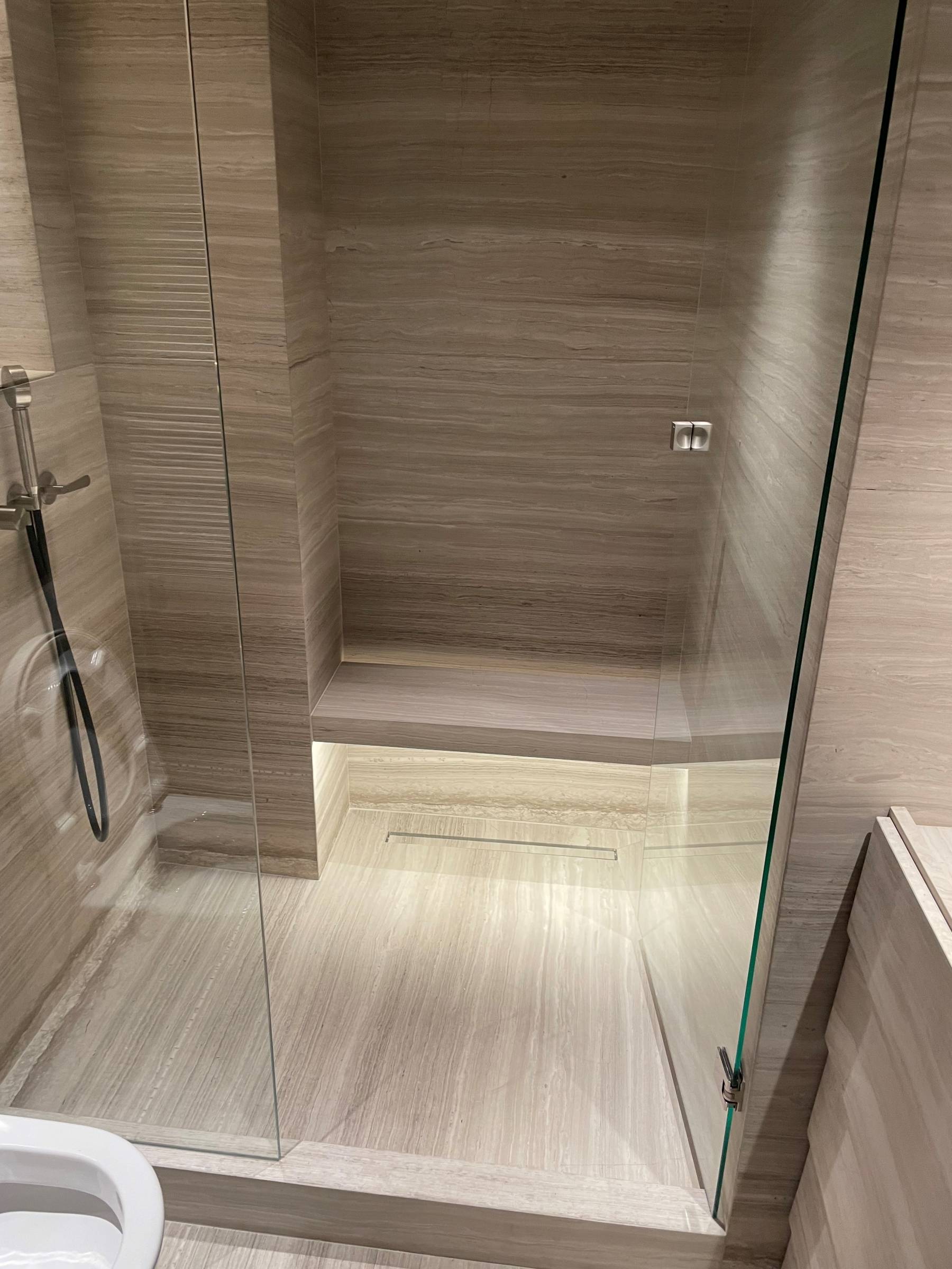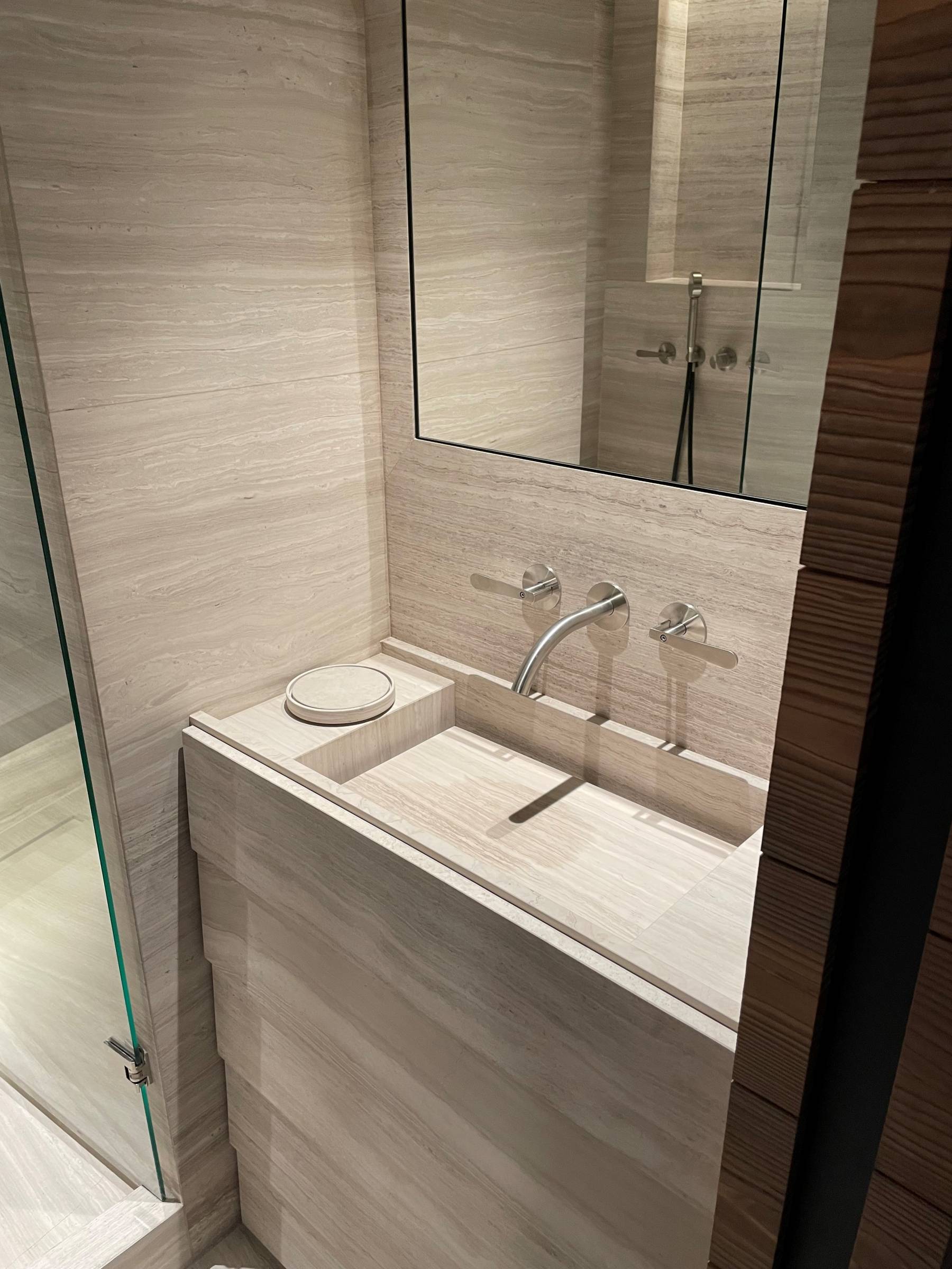 Réalisation d'une salle de bain en marbre type Silk Georgette à Megève